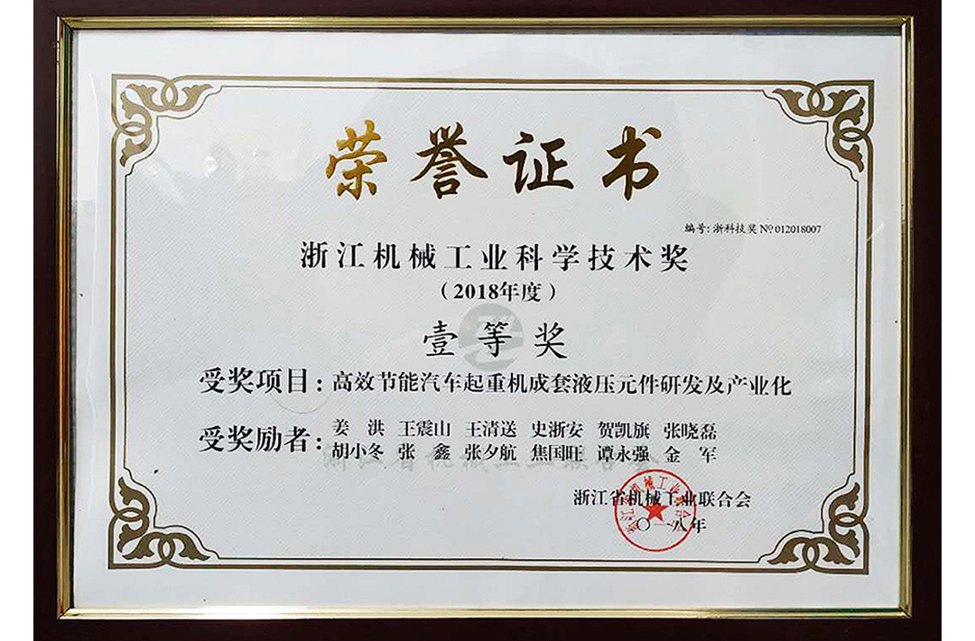Currently, the main products of the group include hydraulic valves, swash plate axial piston pumps/motors, internal gear pumps, reducers, injection molding machines, and electronic control systems. They cover more than 100 series and over 2,000 varieties. The group has obtained ISO9001, ISO14001, ISO45001, and EU CE certifications. Its products are widely used in the fields of construction machinery, agricultural machinery, environmental equipment, and industrial intelligence. The group ranks among the top in the domestic market share in the automotive crane industry. It has been recognized as a demonstration enterprise for brand cultivation by the Ministry of Industry and Information Technology and has been awarded the title of China Machinery Federation Quality Brand. It is also recognized as a well-known trademark in Zhejiang Province.